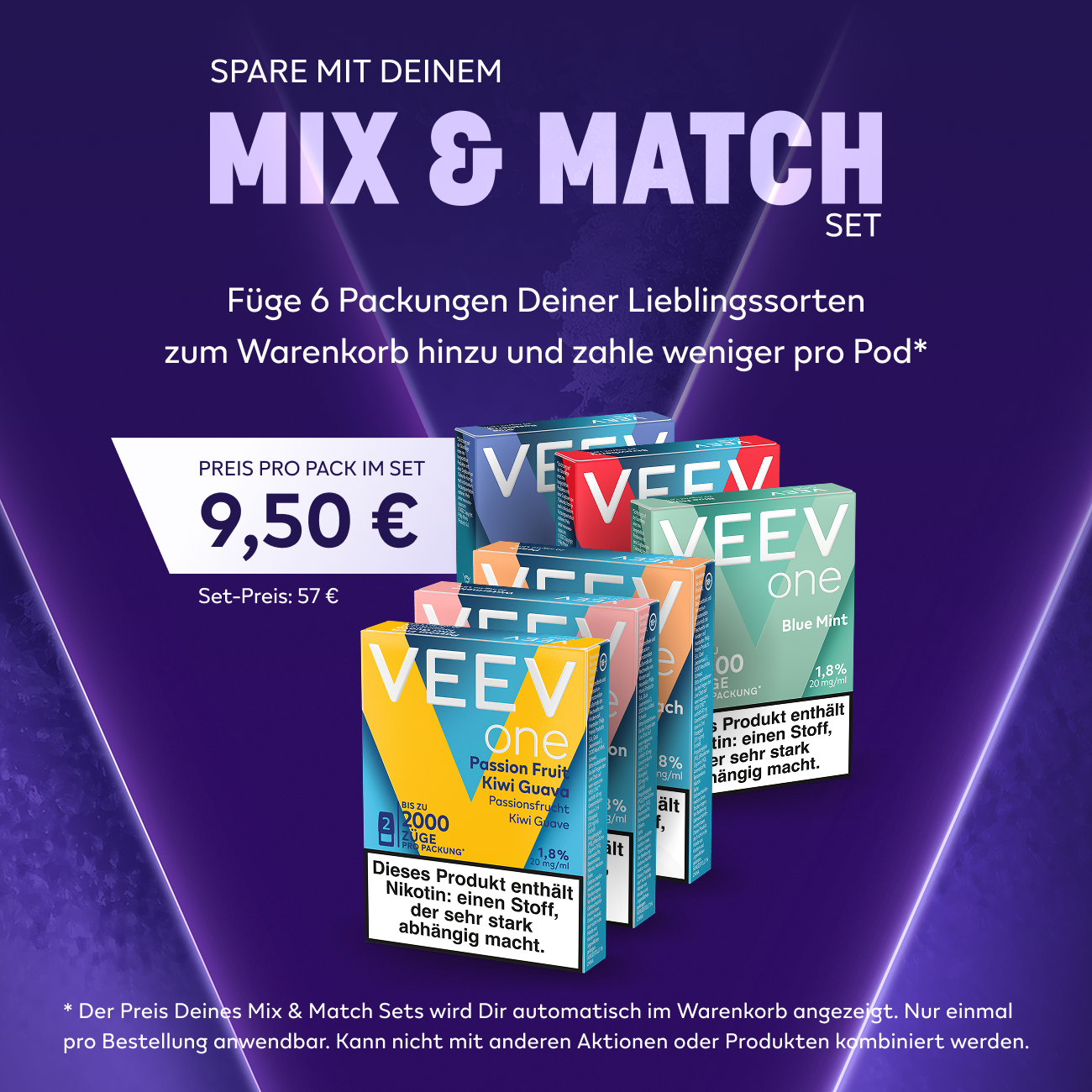 VEEV ist genau wie IQOS eine Marke von Philip Morris. Beide sind Teil der Initiative, Alternativen zur Zigarette anzubieten und so eine rauchfreie Zukunft möglich zu machen. Dank dem umfassenden Know-how und der jahrelangen Erfahrung in der Entwicklung rauchfreier Produkte wurde VEEV zu der Premium-Vape, die sie heute ist. VEEV Produkte werden sorgfältigen Tests unterzogen - für zuverlässige und langlebige Qualität. Unsere Liquids werden von anerkannten Schweizer Toxikologen wissenschaftlich geprüft. So stellen wir sicher, dass wir höchste Qualitäts- und Sicherheitsstandards erfüllen.