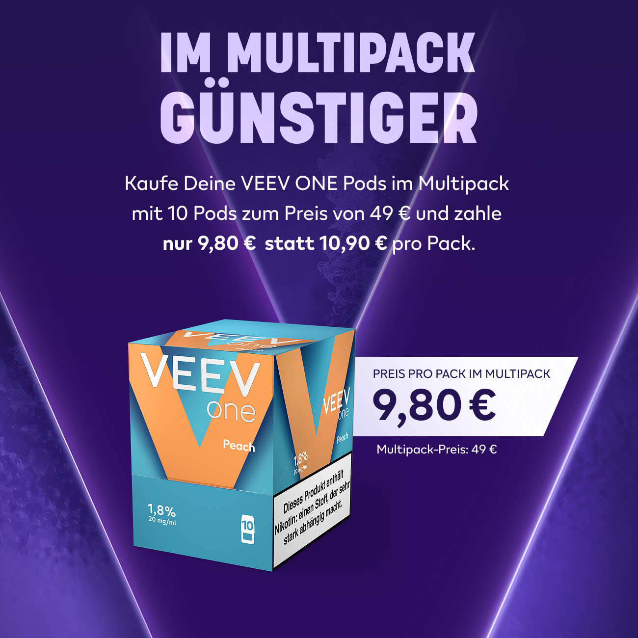 Ja, das E-Liquid in den VEEV ONE Pods enthält 20 mg/ml (1.8%) Nikotin, das süchtig macht.
