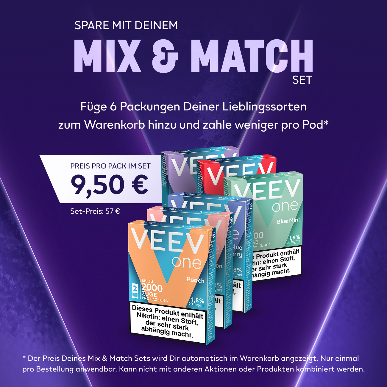Zum Kennenlernen: 2 Packs (4 Pods) Deiner Wahl für 10,90€ + gratis Lieferung. Lege Dir hierfür 2 Packs Deiner Wahl in den Warenkorb. Einmal pro Kunde einlösbar.