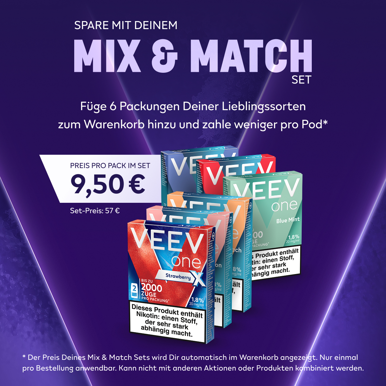 Zum Kennenlernen: 2 Packs (4 Pods) Deiner Wahl für 10,90€ + gratis Lieferung. Lege Dir hierfür 2 Packs Deiner Wahl in den Warenkorb. Einmal pro Kunde einlösbar.