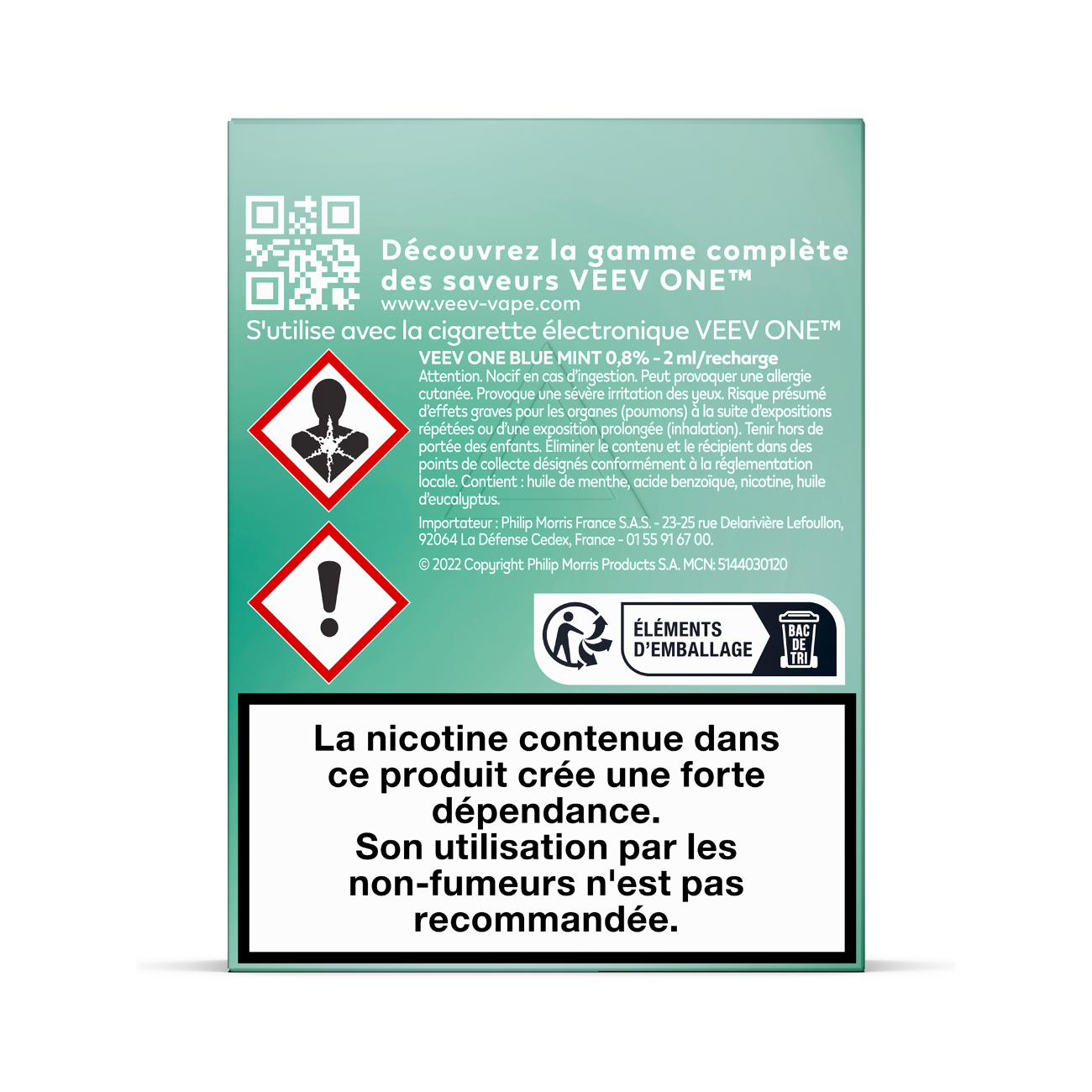 La composition des e-liquides VEEV ONE contient plusieurs ingrédients, dont les principaux sont le propylène glycol (PG) et la glycérine végétale (VG). Ces deux composants sont essentiels pour générer la vapeur lors de l'inhalation. Le PG, en plus de restituer les saveurs, est responsable du « hit », cette sensation de contraction ressentie dans la gorge au moment d’inhaler la vapeur. La VG, quant à elle, permet de produire une vapeur plus dense. En fonction des besoins et préférences des utilisateurs, les e-liquides VEEV ONE peuvent contenir de la nicotine à différents taux. À noter : la composition et les taux de nicotine de chaque pod sont clairement indiqués sur l'emballage.
