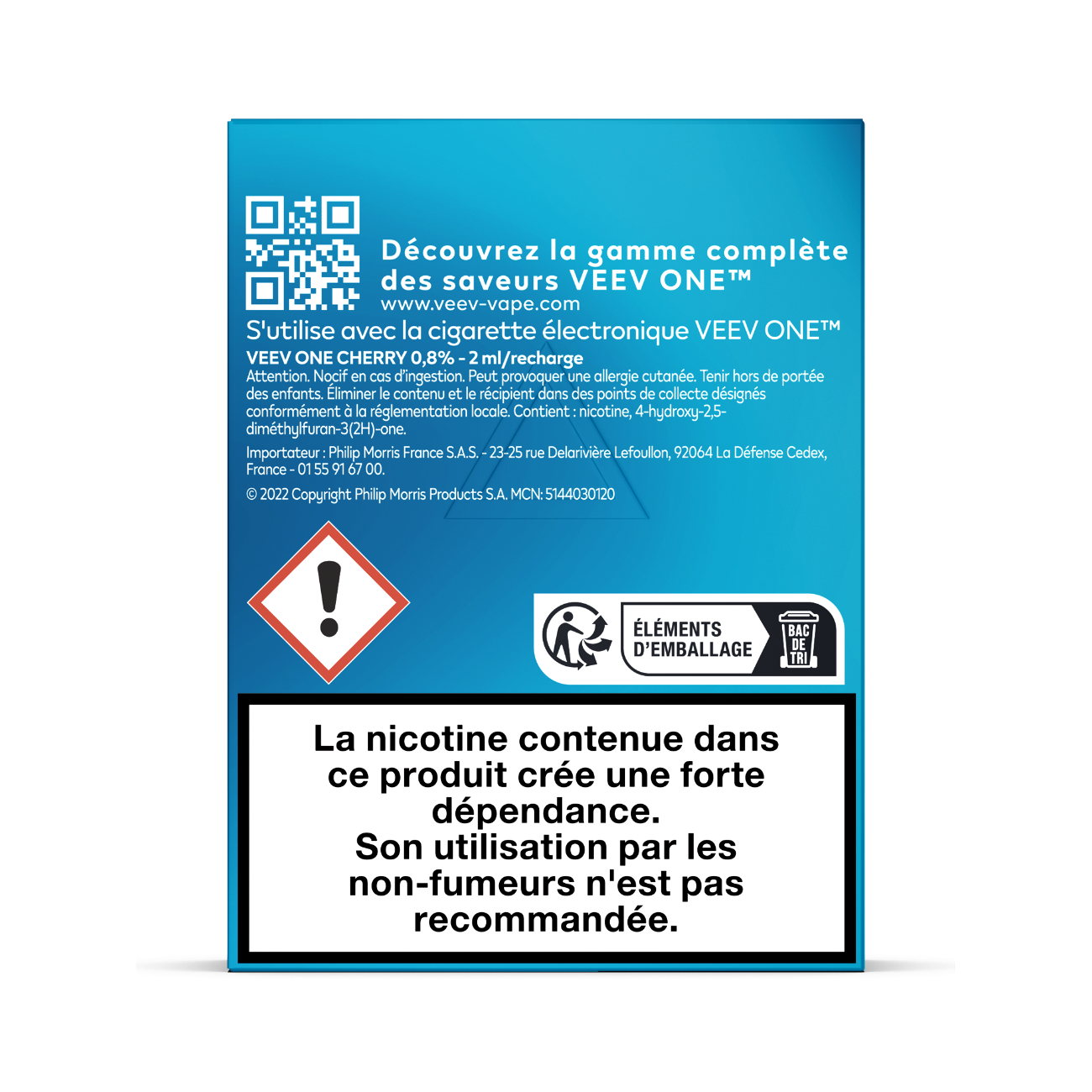 La composition des e-liquides VEEV ONE contient plusieurs ingrédients, dont les principaux sont le propylène glycol (PG) et la glycérine végétale (VG). Ces deux composants sont essentiels pour générer la vapeur lors de l'inhalation. Le PG, en plus de restituer les saveurs, est responsable du « hit », cette sensation de contraction ressentie dans la gorge au moment d’inhaler la vapeur. La VG, quant à elle, permet de produire une vapeur plus dense. En fonction des besoins et préférences des utilisateurs, les e-liquides VEEV ONE peuvent contenir de la nicotine à différents taux. À noter : la composition et les taux de nicotine de chaque pod sont clairement indiqués sur l'emballage.