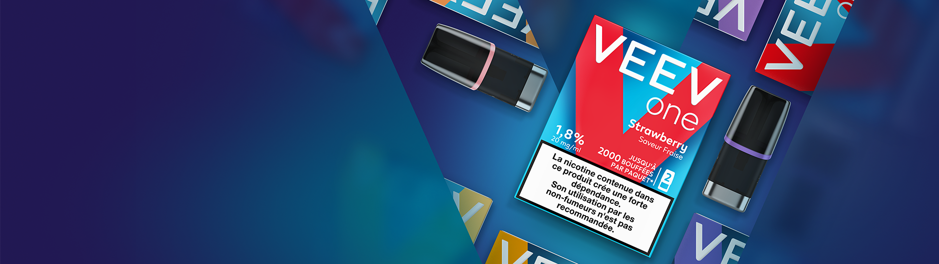 Les produits VEEV ne sont pas sans risques. Leur utilisation délivre de la nicotine qui est addictive. Uniquement pour les adultes qui autrement continueraient à fumer ou à utiliser des produits contenant de la nicotine.